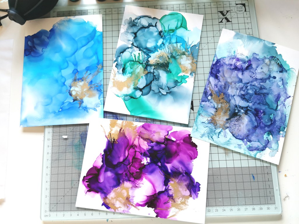 So, I’m jumping on the alcohol ink trend… I’ve been eyeing up beautiful alcohol ink cards for months, too nervous to try it myself, but it was my birthday recently, so I asked for a few basics to get me started.
