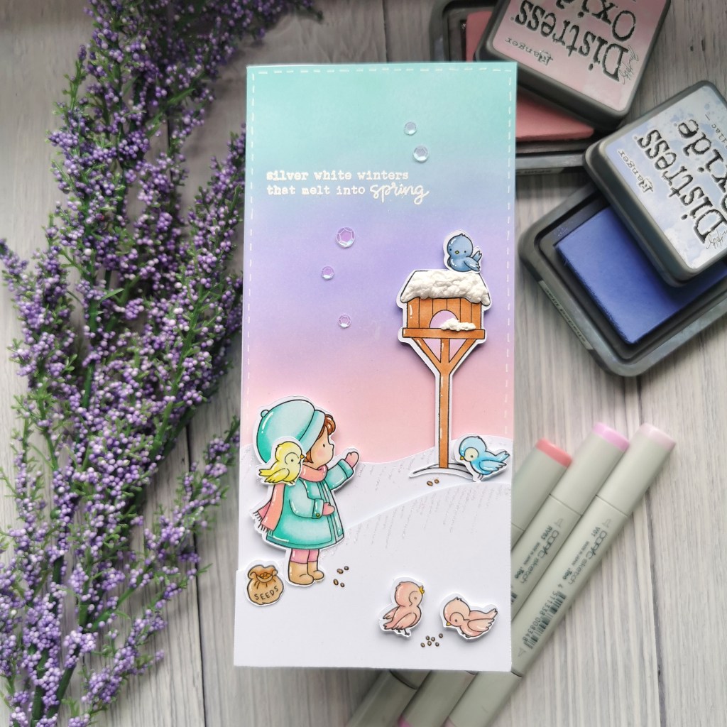 I looove these spring pastels and I knew exactly which stamp set I wanted to use for my project – Feed the Birds.