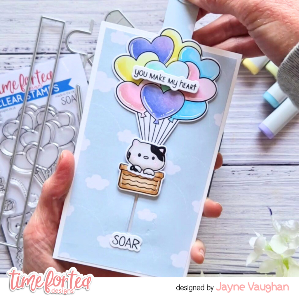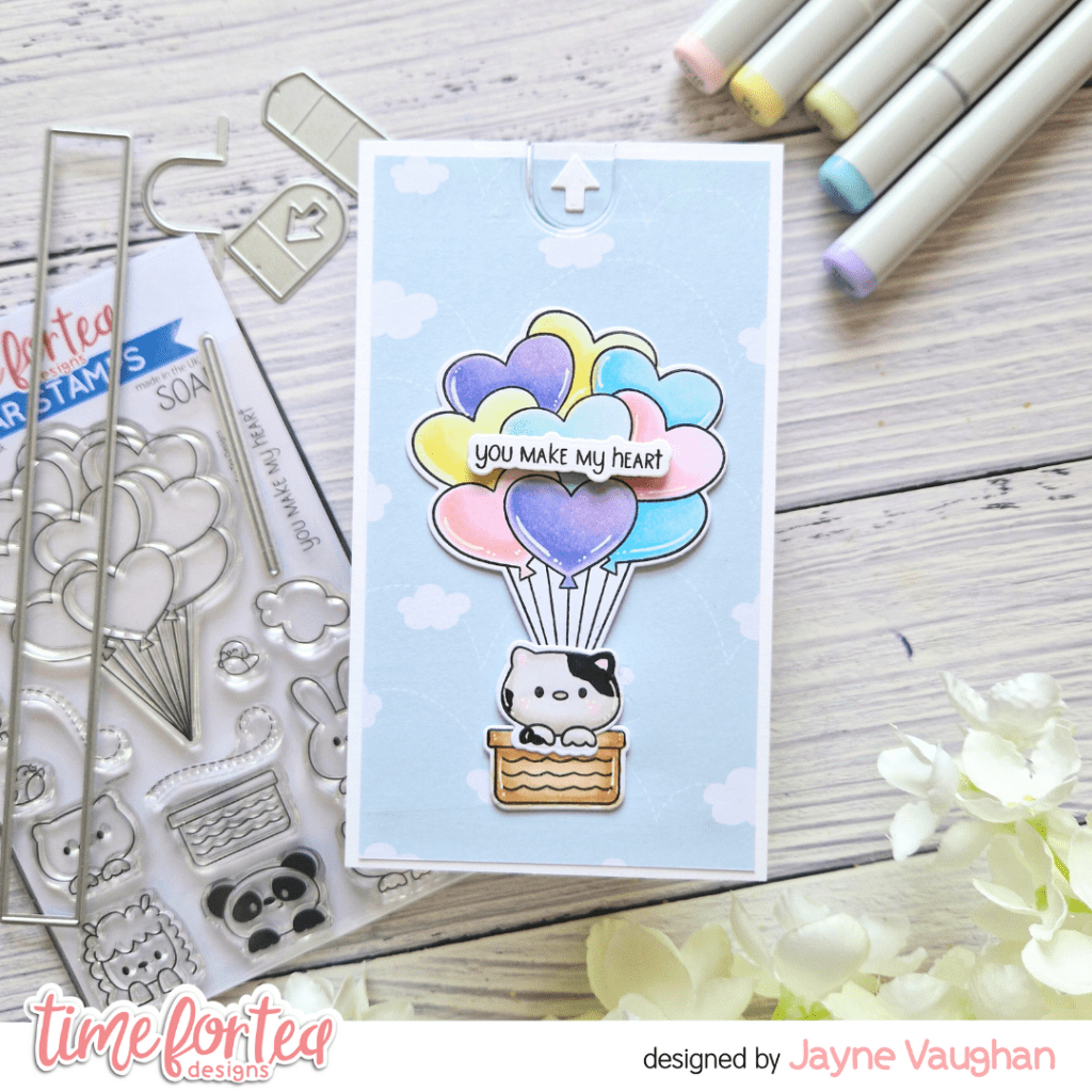 Hey guys, happy Friday! The weeks are flying by right now. And speaking of flying, today I’m sharing this hot air balloon slider card featuring some of the new goodies from the latest Time for Tea Designs release.