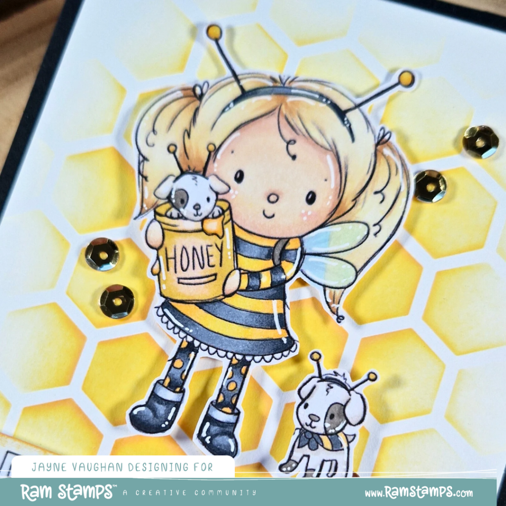 Have you finished your Halloween crafting yet? If not, there’s still time! Today, I’m sharing this bee-eautiful card made with a digital stamp from RAM Stamps.
