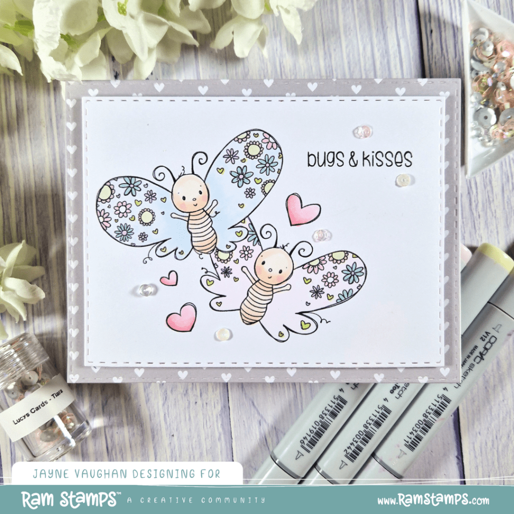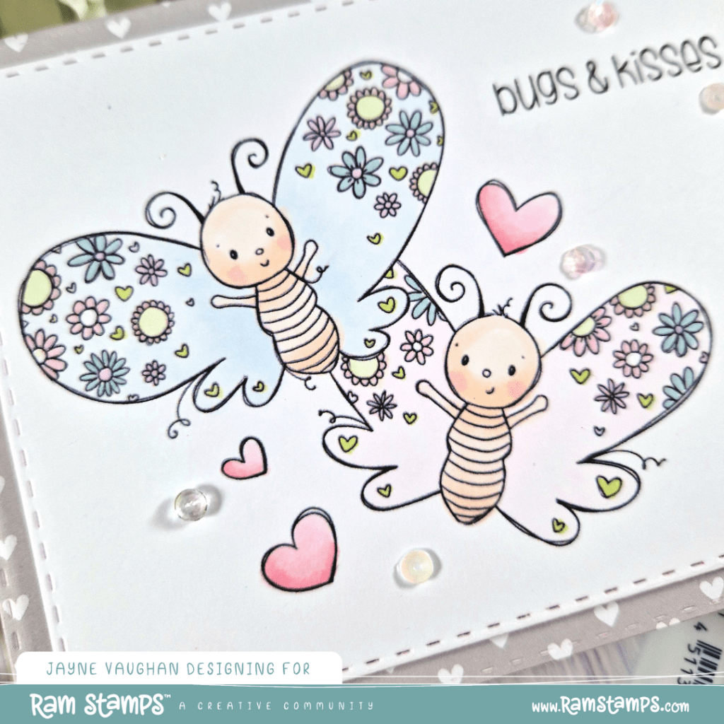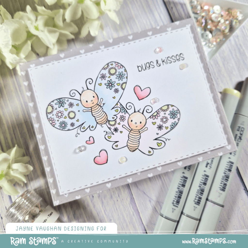 Hey friends, thanks for stopping by. Today, I’m sharing a soft, pastel card featuring one of the images from the latest RAM Stamps release. This image is called Butterfly Kisses.